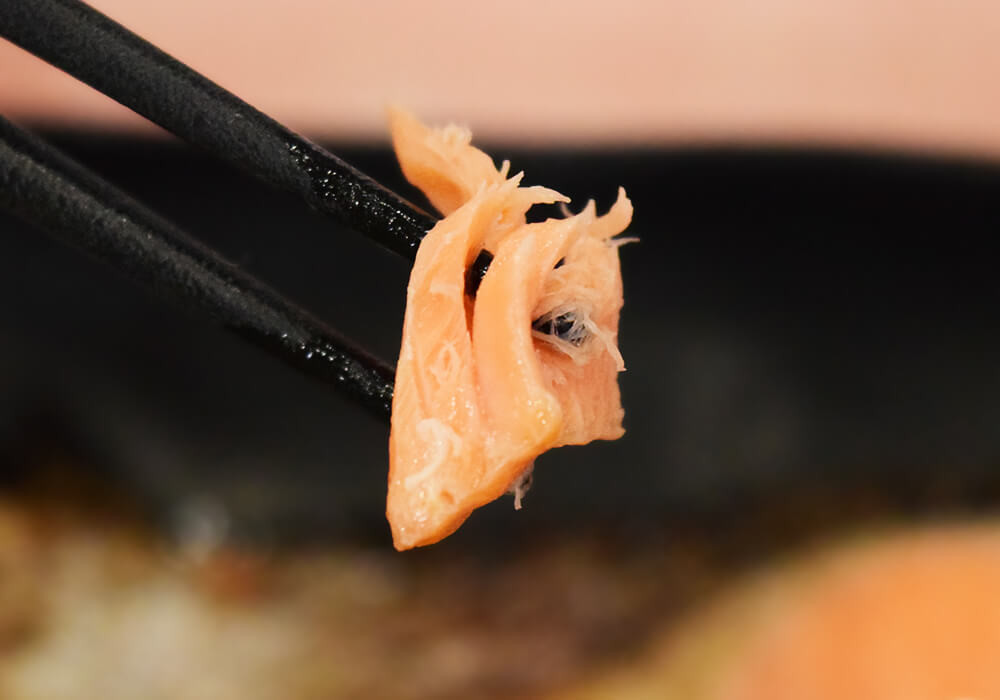 ほどよい塩気があり、そのままごはんと合わせて食べると、王道のおいしさを楽しめます。私が食べた鮭は骨が一本もなく、面倒な骨取り作業が不要だった点も好印象。テンポよく食べ進められたのも、地味ながらうれしいポイントです。