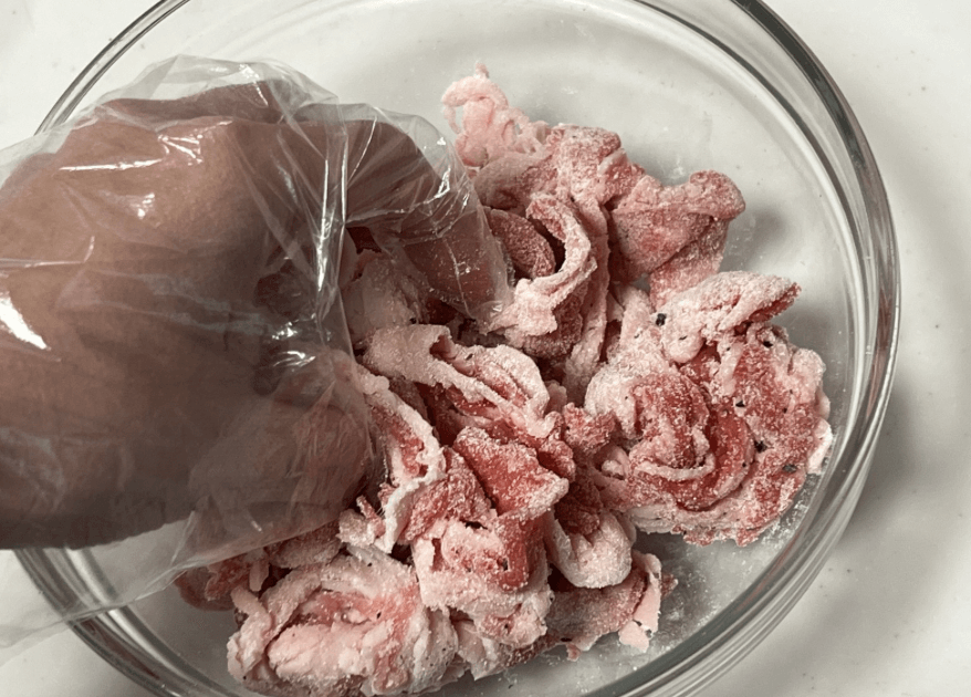 ここで牛バラ肉に小麦粉をまぶしておくことで、あとで自然なとろみがつきますよ♪