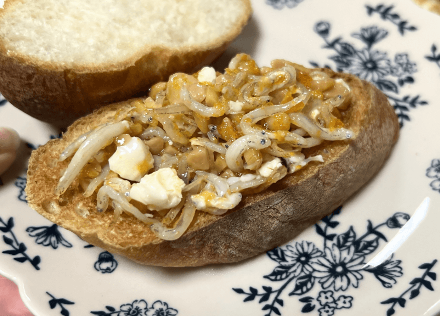 「これ、絶対パンにも合う!」と、家にあったバゲットを引っ張り出してのせてみました。