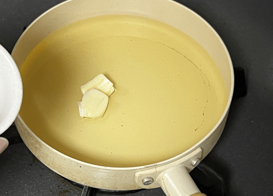 小さめのスキレット(またはフライパン)に、オリーブオイルを注ぎます。