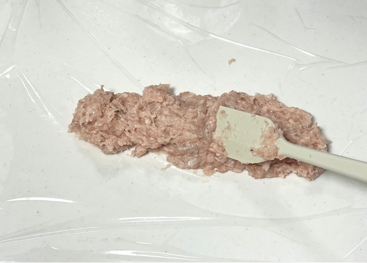 次に、できたタネをラップに包んで冷凍します!