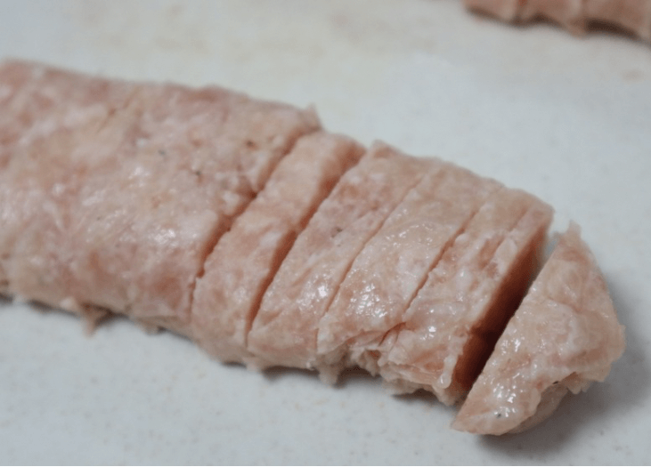 筆者はできたタネを半分ずつに分け、チキンナゲットの形をイメージしながら包んでみました。