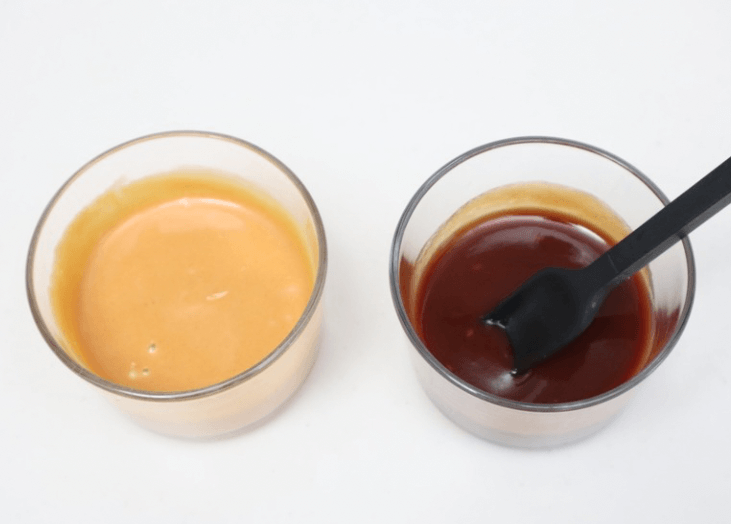 【マクドナルド風バーベキューソース】と【マクドナルド風マスタードソース】の材料をそれぞれ混ぜてソースを作りましょう。