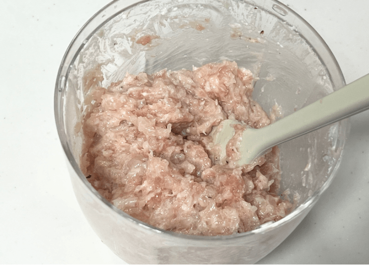 ここでは少し粗めに撹拌した方がお肉の食感を感じられるので、ペースト状になりすぎないことを意識しました!