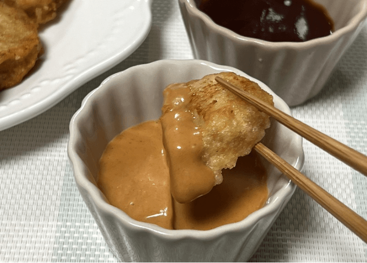 揚げたてのチキンナゲットにたっぷりのソースを添えたら、「マクドナルド風チキンナゲット」の完成です♪