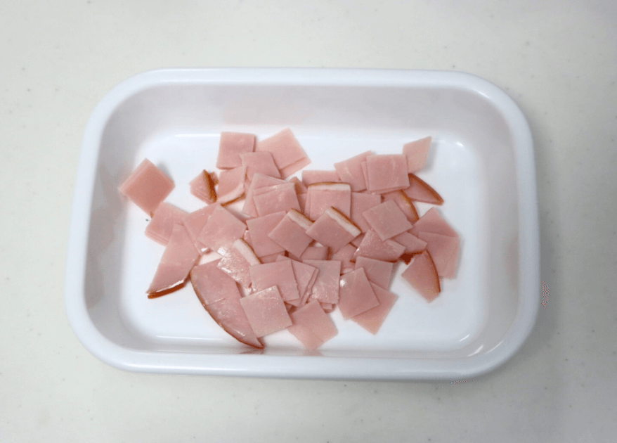 メインの具材となるロースハムを1cm角にカットします。