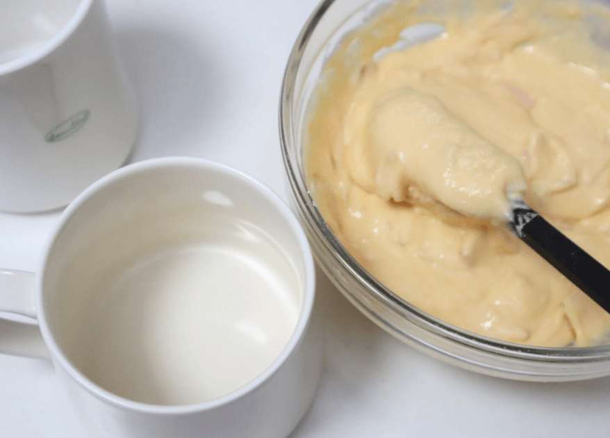 公式レシピでも“軽く”混ぜ合わせると記載されているので、ホットケーキ作りと同じように少しダマが残るくらいに混ぜ合わせておきましょう!