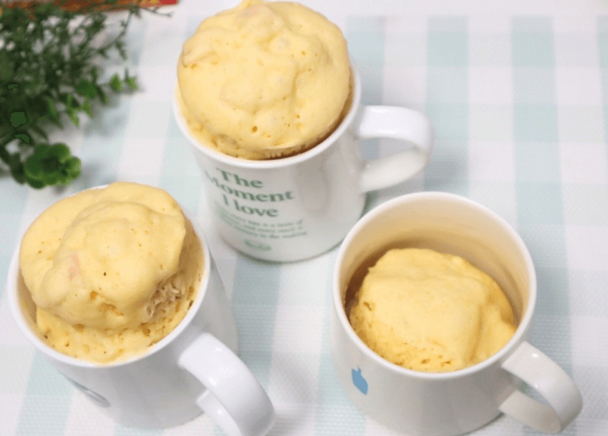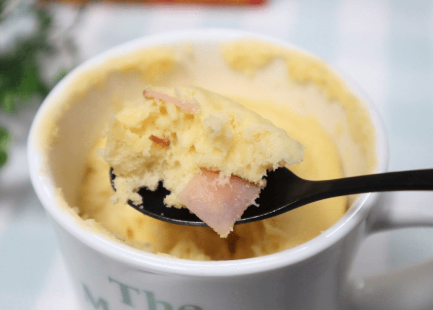 完成した「ハムのマグカップケーキ」、もう見た目からしてふわっふわで美味しそう♡