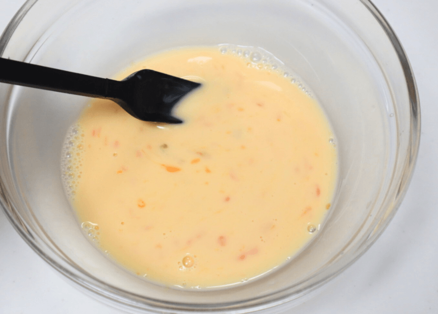 ボウルに卵と牛乳を入れてよく混ぜます。