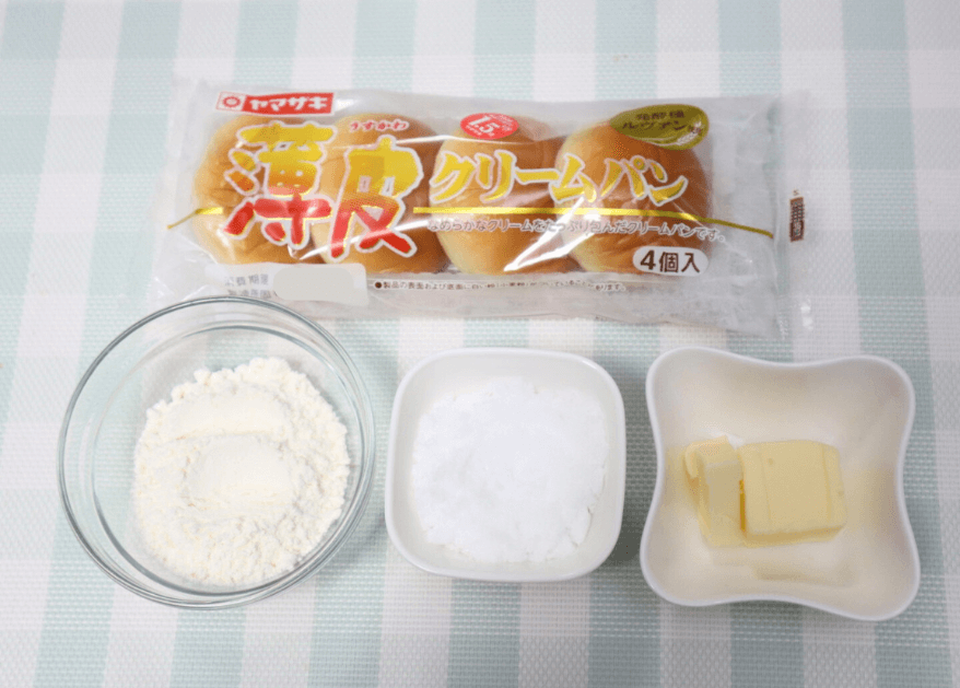 アレンジするのは、スーパーやコンビニでも売られていて馴染みのある4個入りのクリームパン♪