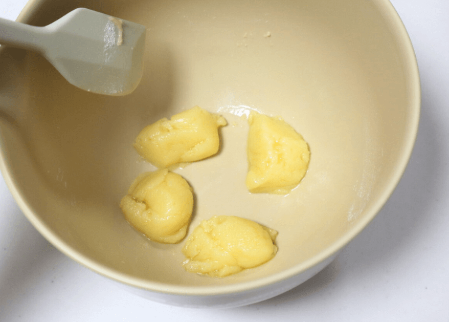 ゴムベラで練るうちにまとまりましたが、やわらかすぎる場合は冷蔵庫で冷やすのがよいそうですよ。