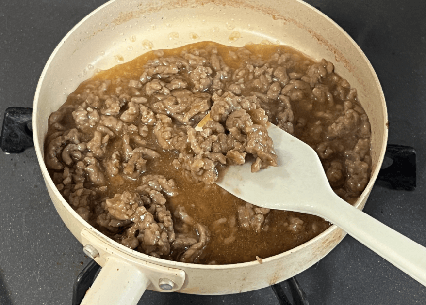 炒めるのは豚ひき肉と調味料だけなので、フライパンは小さめがおすすめ!