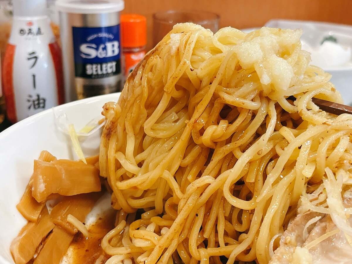 チャーシューと一緒に食べたら、脂の旨味も加わりより二郎系らしいギルティな味わいに。