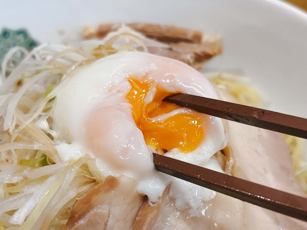 ネギのうえに、温泉玉子をのせて……!