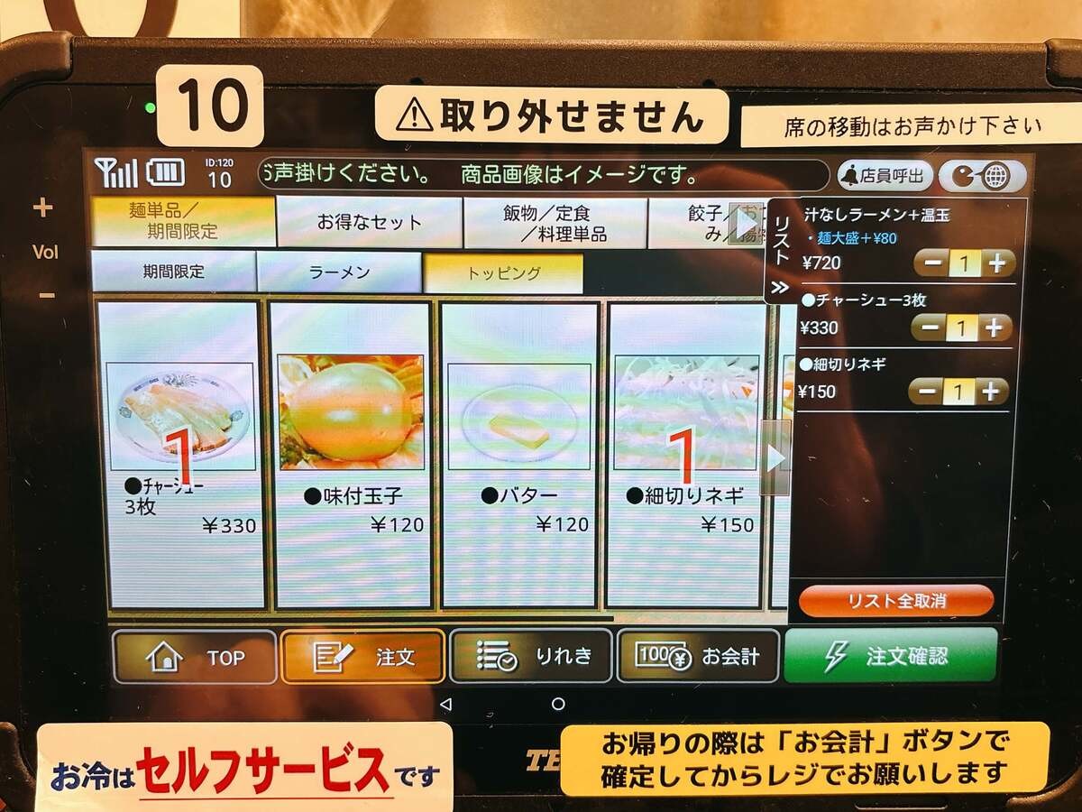 トッピングは「チャーシュー(税込330円)」と「細切りネギ(税込150円)」を追加。
