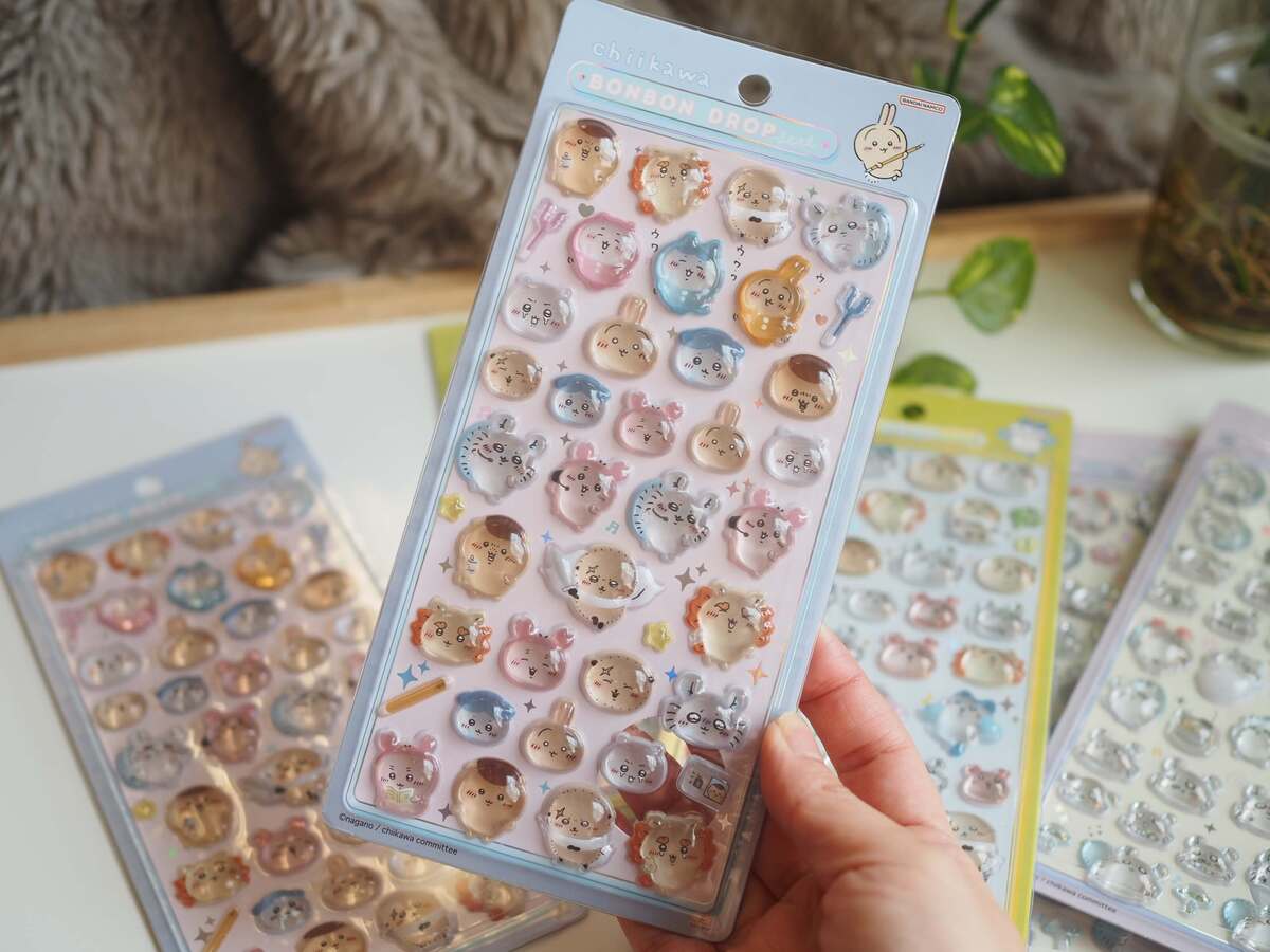 私も子どもと一緒にハマっている「ちいかわ」の「ボンボンドロップシール」。運良くゲットできたのですが、ツヤッとした見た目とぷっくりしたビジュアルが可愛くてまるで宝石のようだと感動しました♪