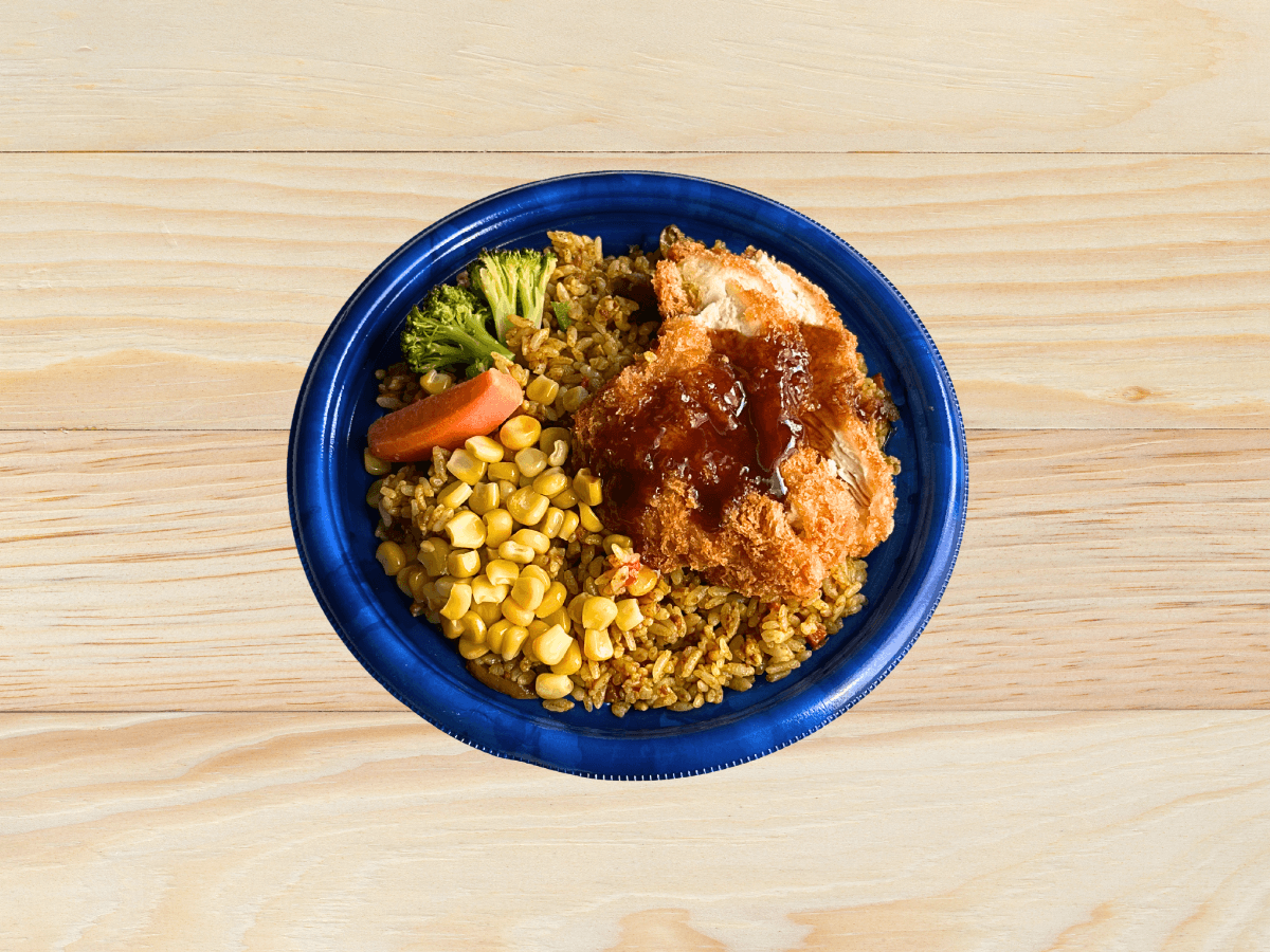 チキンカツは甘みが強く少しスパイス感のあるソースがかかっています。ソースが厚めの衣に絡んで美味しいです。