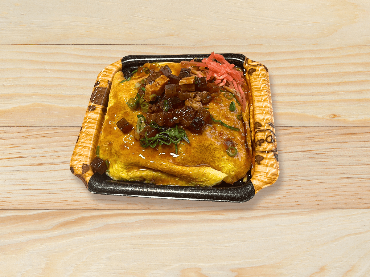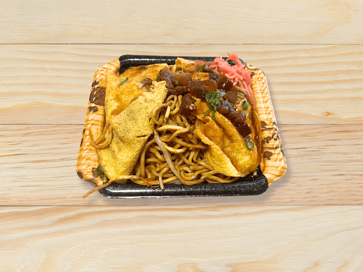 野菜たっぷりの焼きそばの上に柔らか薄焼き玉子をのせ、さらに「ぼっかけ」をトッピングした商品。