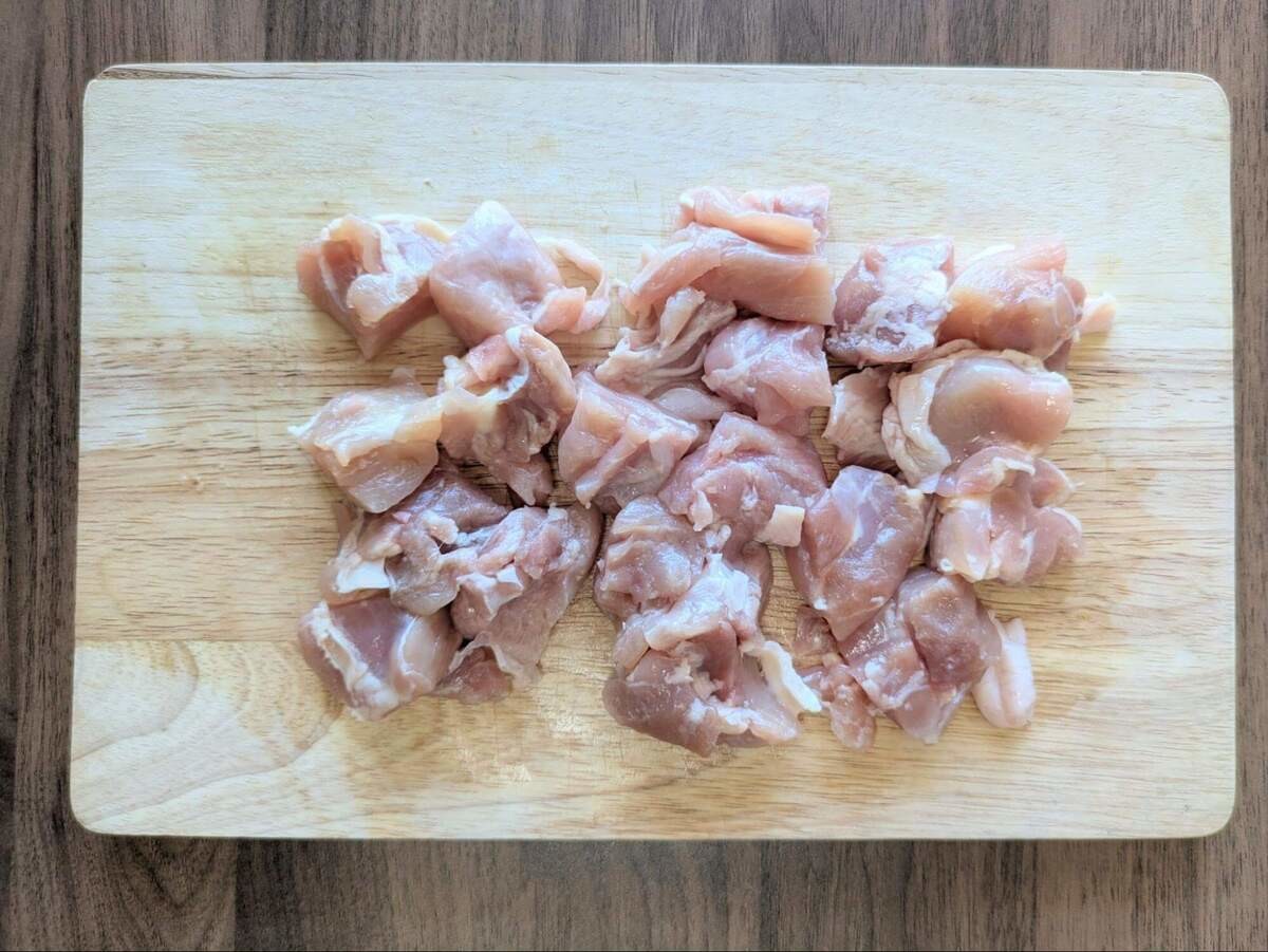 鶏もも肉の余分な皮と脂は除いて、小さめの一口大にカット。