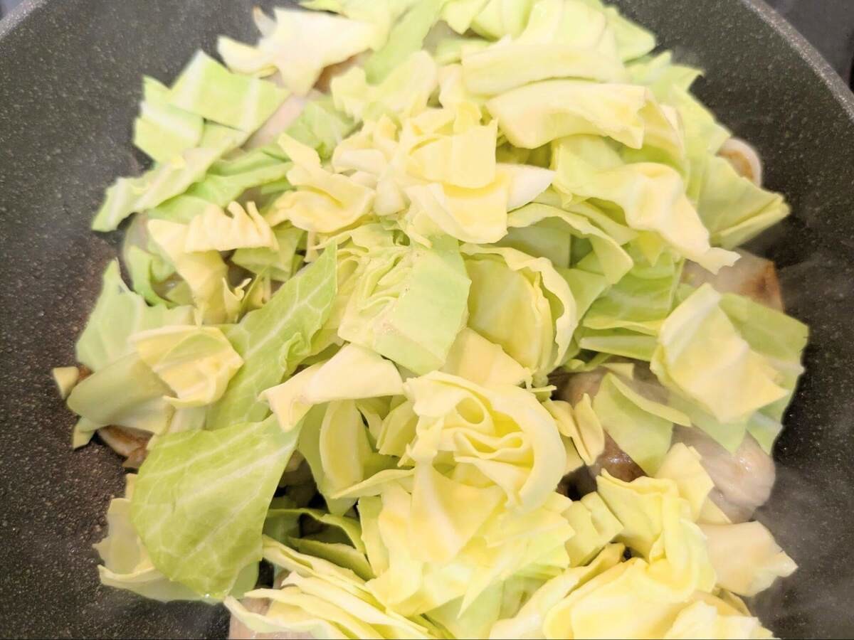 作り方⑥キャベツを加える