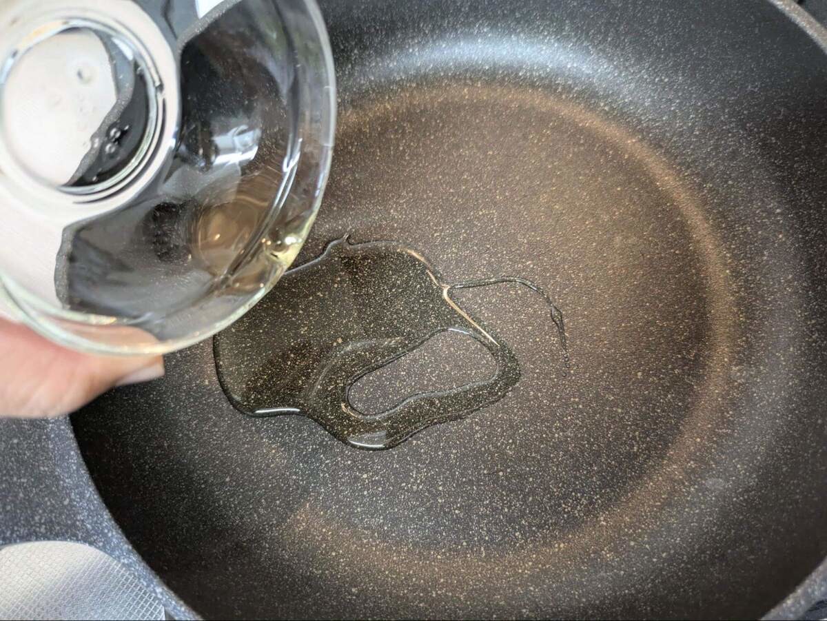 フライパンにサラダ油をひきます。