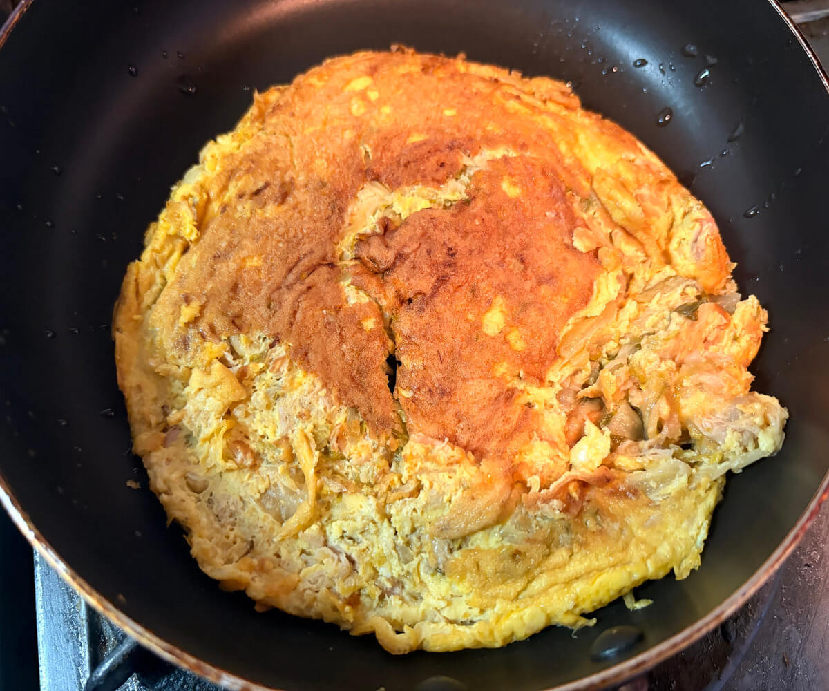 それに対して、スパニッシュオムレツはジャガイモなどの野菜を卵と混ぜ、フライパンで円盤状に両面をじっくり焼く固焼き料理なんだとか。