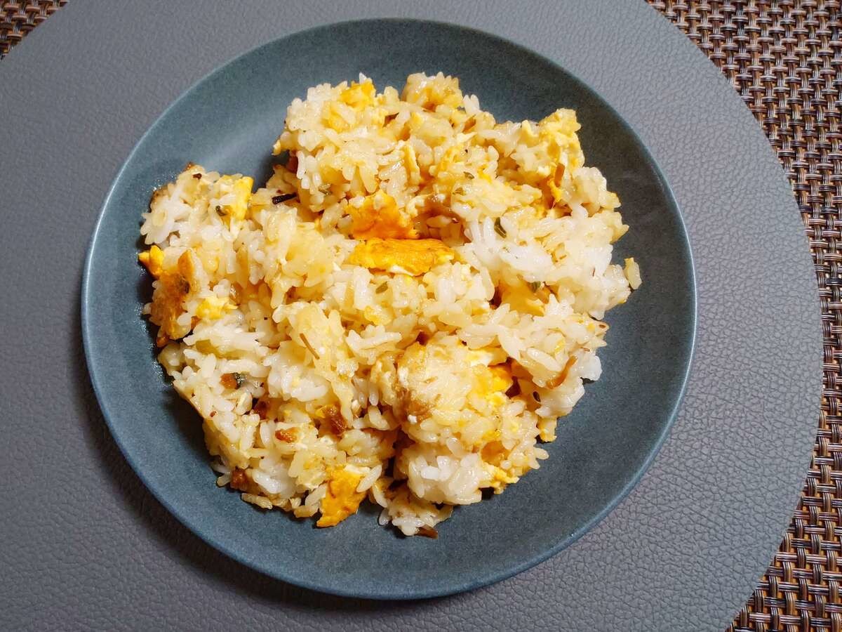 ごはんになめ茸と玉子、ネギやお好きな具材を加えて炒飯にすれば1食になります。