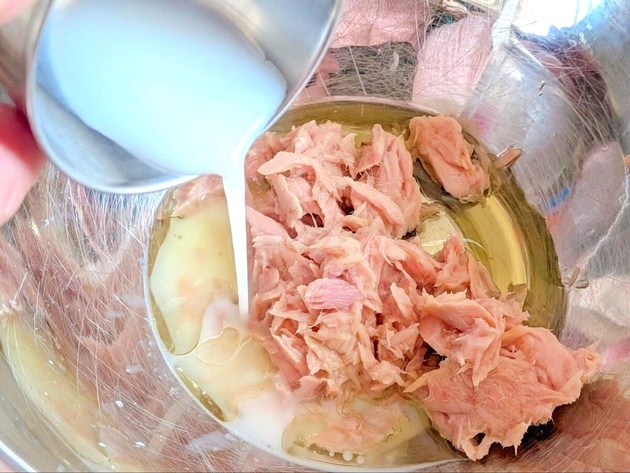 今回はノンオイルツナの汁けを切って入れました。