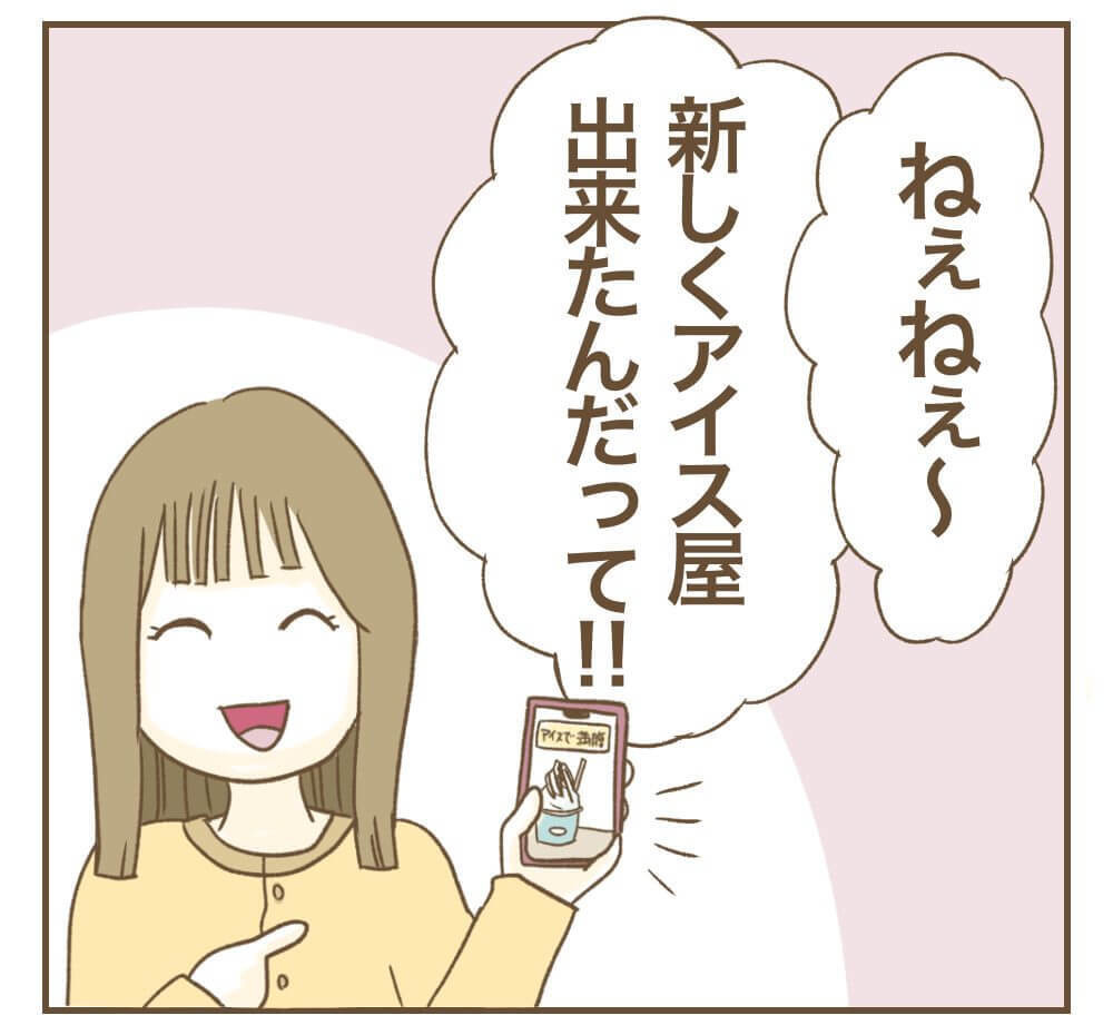 ミオさんが感じた「そういう問題……!?」という真っ当な違和感。それを置き去りにしたまま、リエちゃんはまたしても「新店のアイス屋、木曜日行こ♡」と笑顔で誘い始めます。