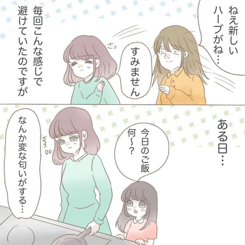 「極力関わりたくない」と避けていたアオイさんでしたが、ある日、なんとユカリちゃんから“変なにおい”が……!?
