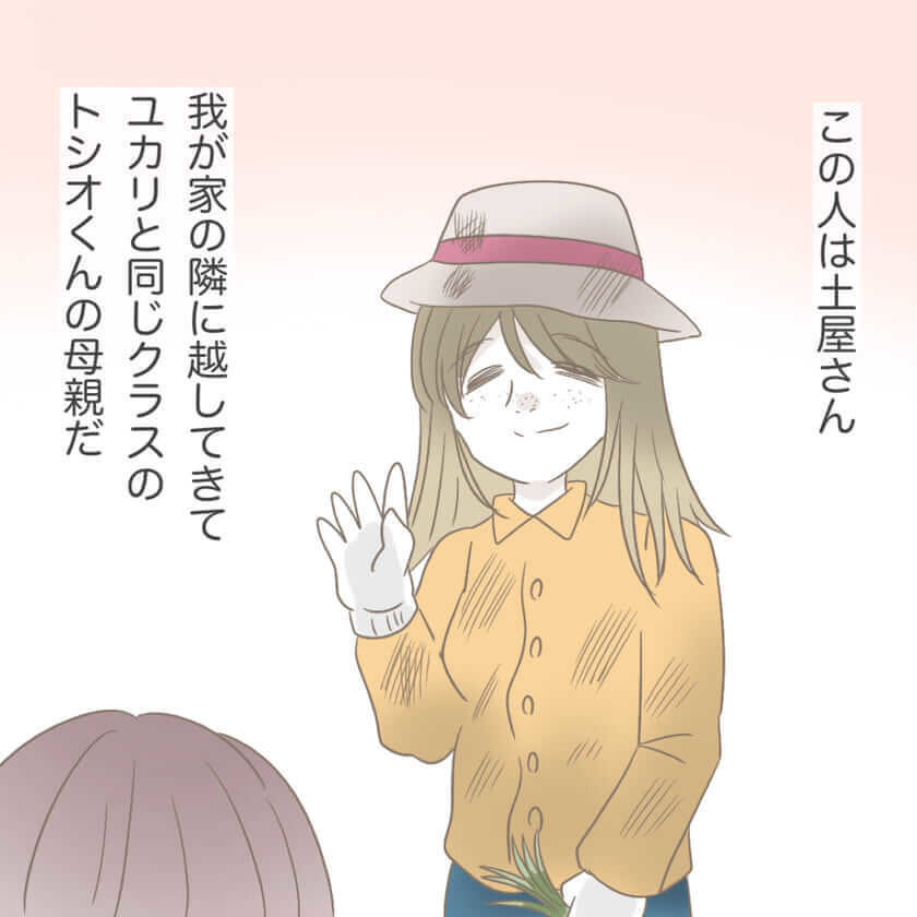 平穏な日々に変化が訪れたのは約2ヶ月前。お隣に、ユカリちゃんの同級生・トシオくん一家(土屋さん)が引っ越してきてからでした。