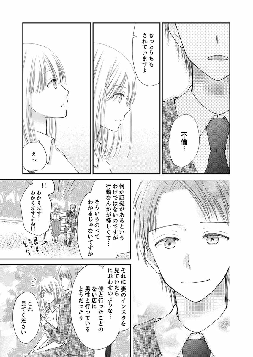 絶望のどん底で手を差し伸べてくれたのは元サレ夫で離婚経験者の同僚。彼のアドバイスを元に探偵社に頼らない自力の証拠集めをすることに!!