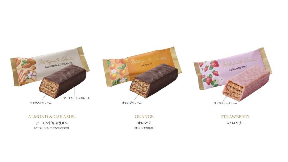 人気の焼き菓子「ミルフィーユショコラ」に新しい味わいの「アーモンドキャラメル」が登場。
