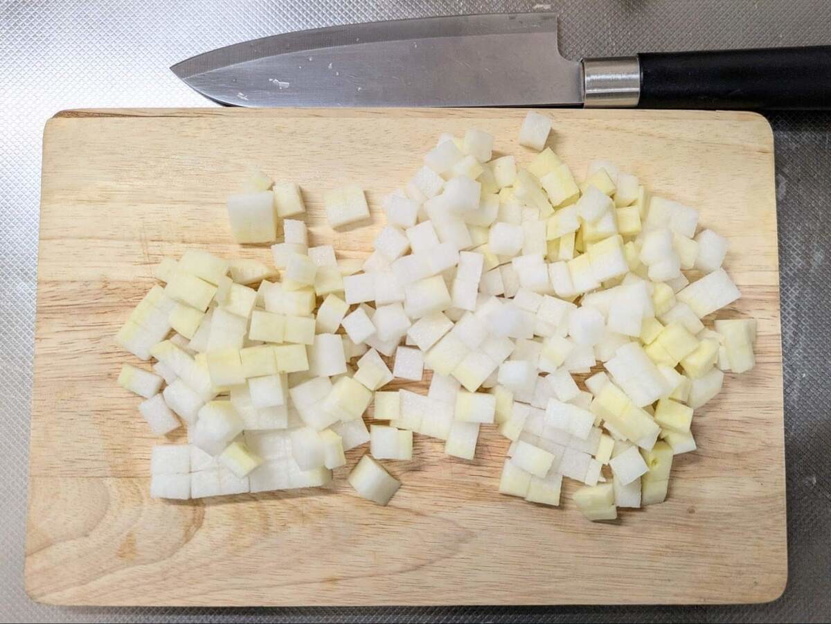 大根を1cm角に切ります。