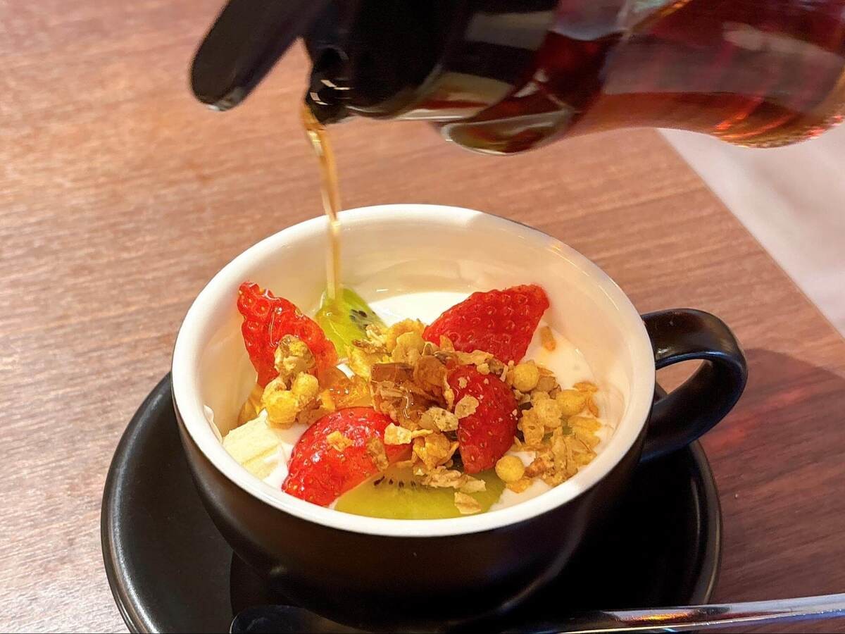 理由:3種類のフルーツとグラノーラが入り、食べごたえ十分。蜂蜜入りメイプルシロップがかけ放題なのも魅力です。