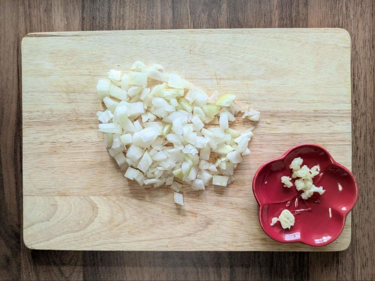 玉ねぎはみじん切りにします。