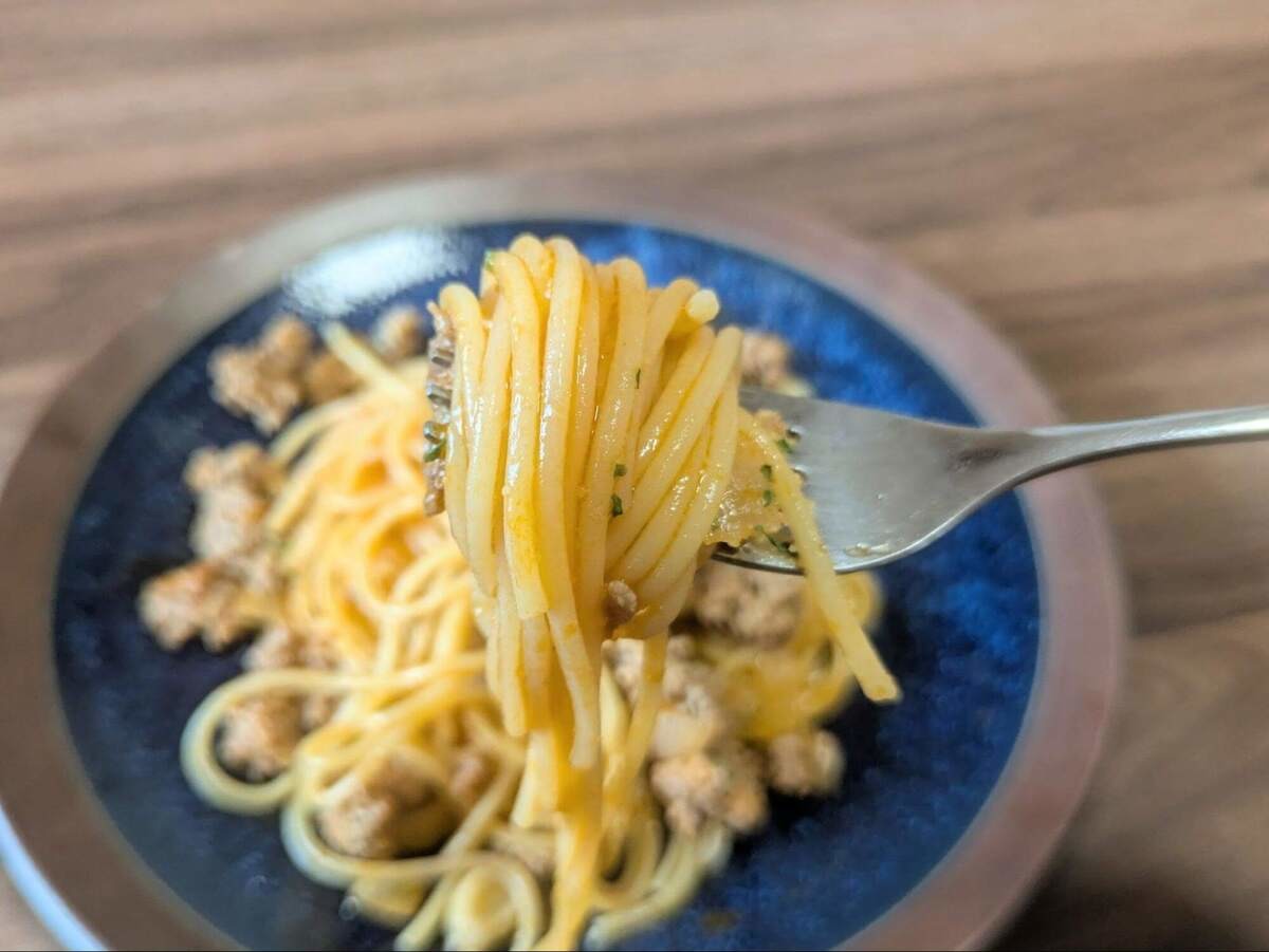 鍋もザルも使わずフライパン1つで完結。洗い物が減るだけで、パスタのハードルがぐっと下がりました。