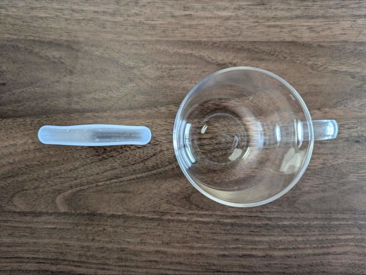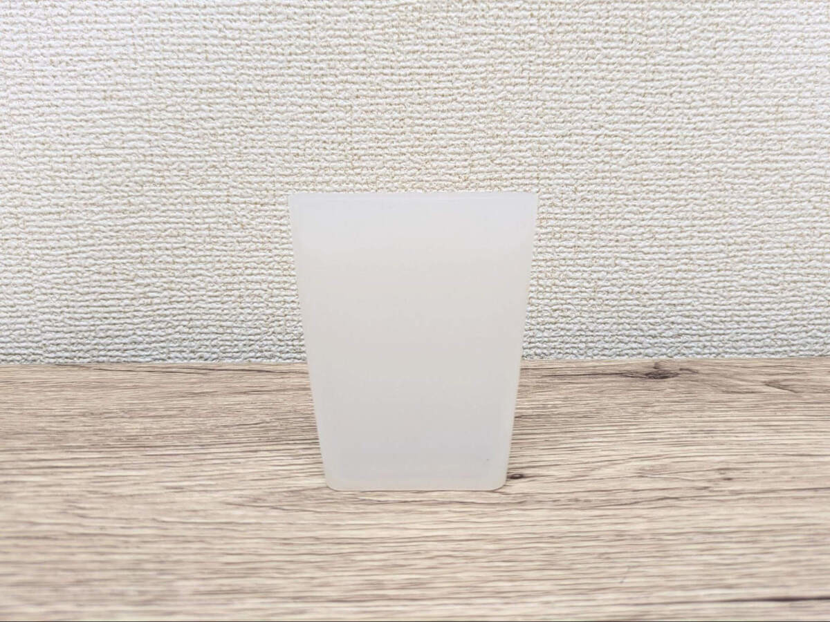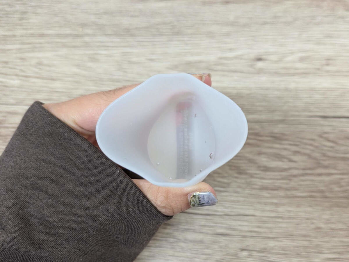薄いコップは使いにくいと思うかもしれません。でも、シリコーン素材だから、ちょっと力を加えるだけで写真のように広がり、特に使いにくく感じませんでした。