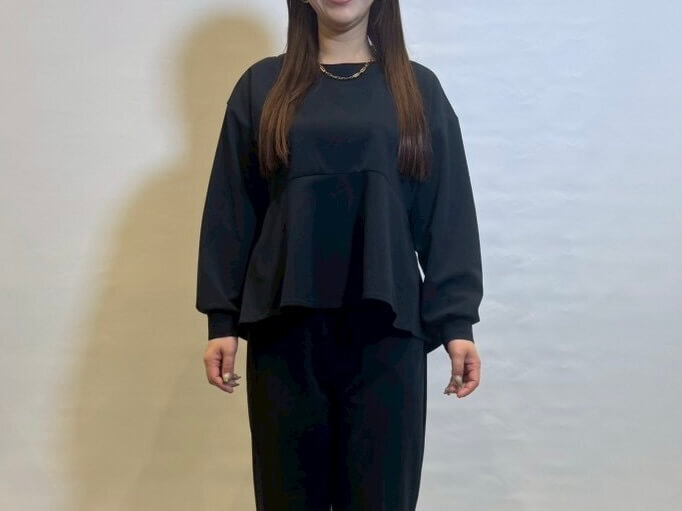 広がりすぎない美シルエット「レディースハレナリーペプラムプルオーバー」1,280円(税込)