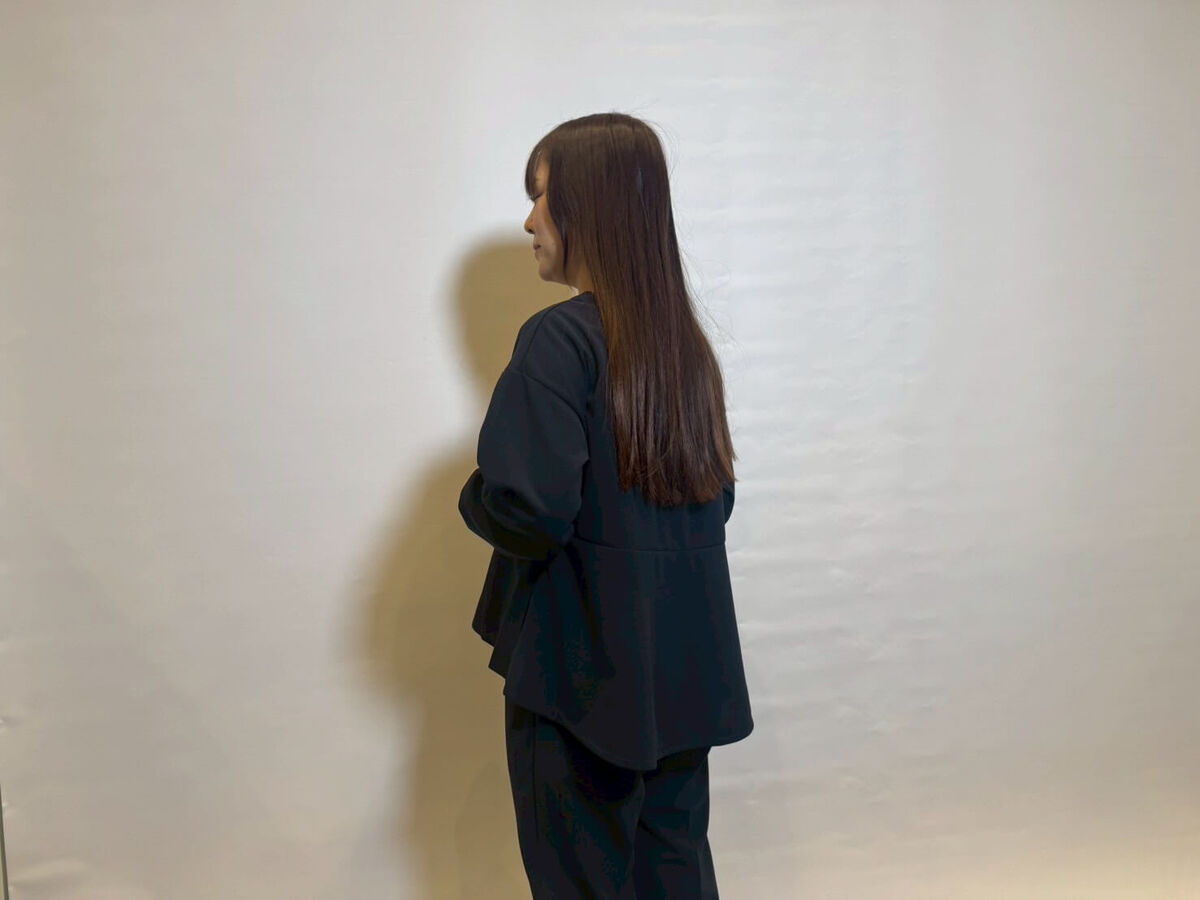 実際に着てみると、体型カバー力の高さに驚きました。アラフォー&産後のため、自分では見えない後ろ姿が気になるのですが、しっかりカバーできていると感じました。