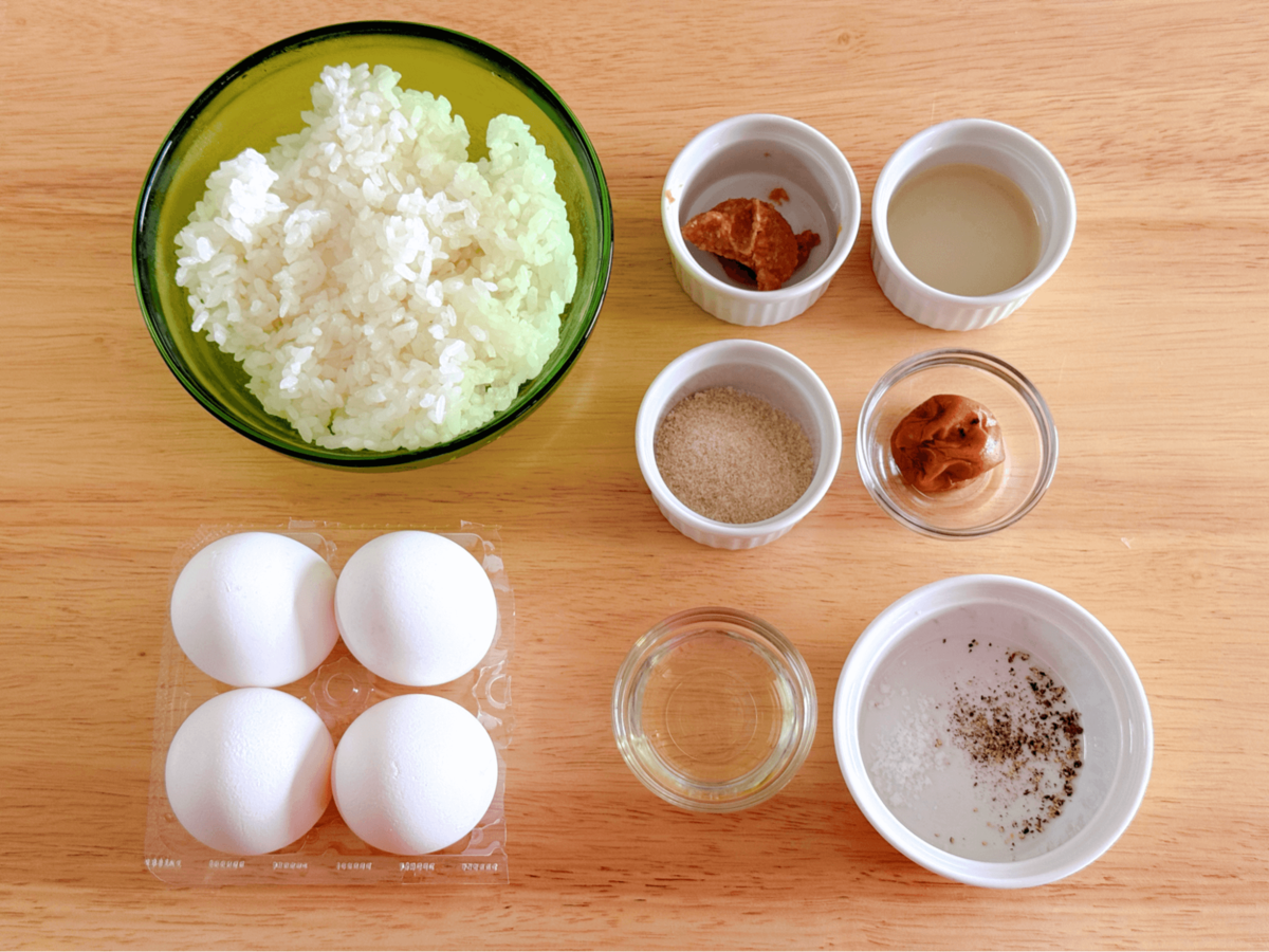 半熟の部分と香ばしく焼けた部分のある卵が、温かいご飯に絡みます。そこへ梅みそソースが加わって、シンプルなのに奥行きのある味わい。