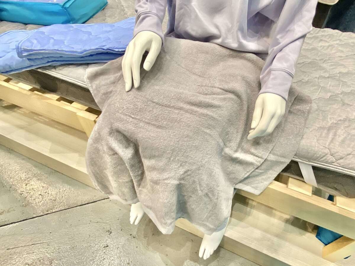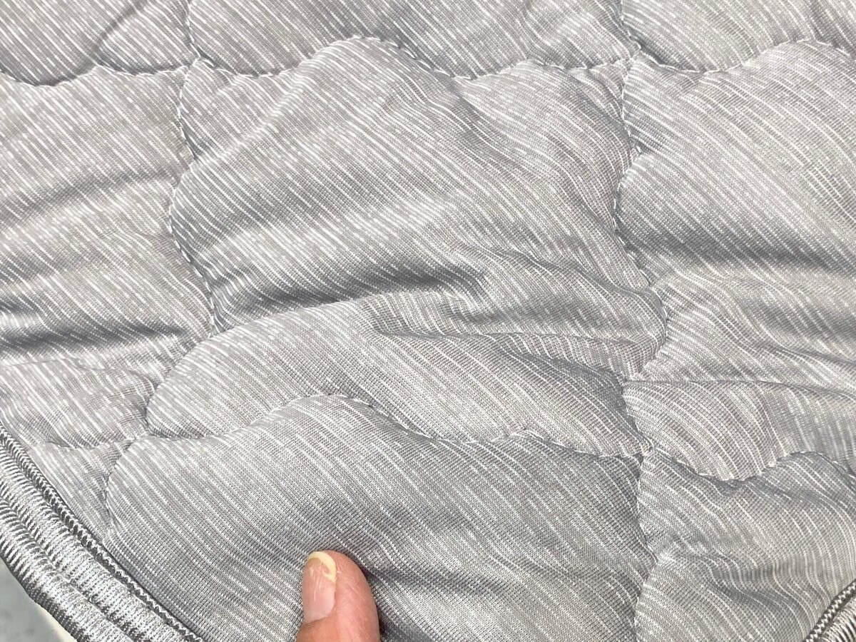 メディヒールウェアと同じ糸を使用した敷パッドです。横に無数に入っている白いラインが、その特殊繊維。