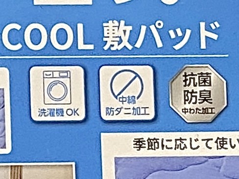 さらに、防ダニ加工付きというのも大きなポイントです。防ダニ加工の敷きパッドは4,000円以上する印象があるので、1,900円という価格はかなり攻めています。中わたに、ダニの増殖を抑制する加工が施されているそうです。