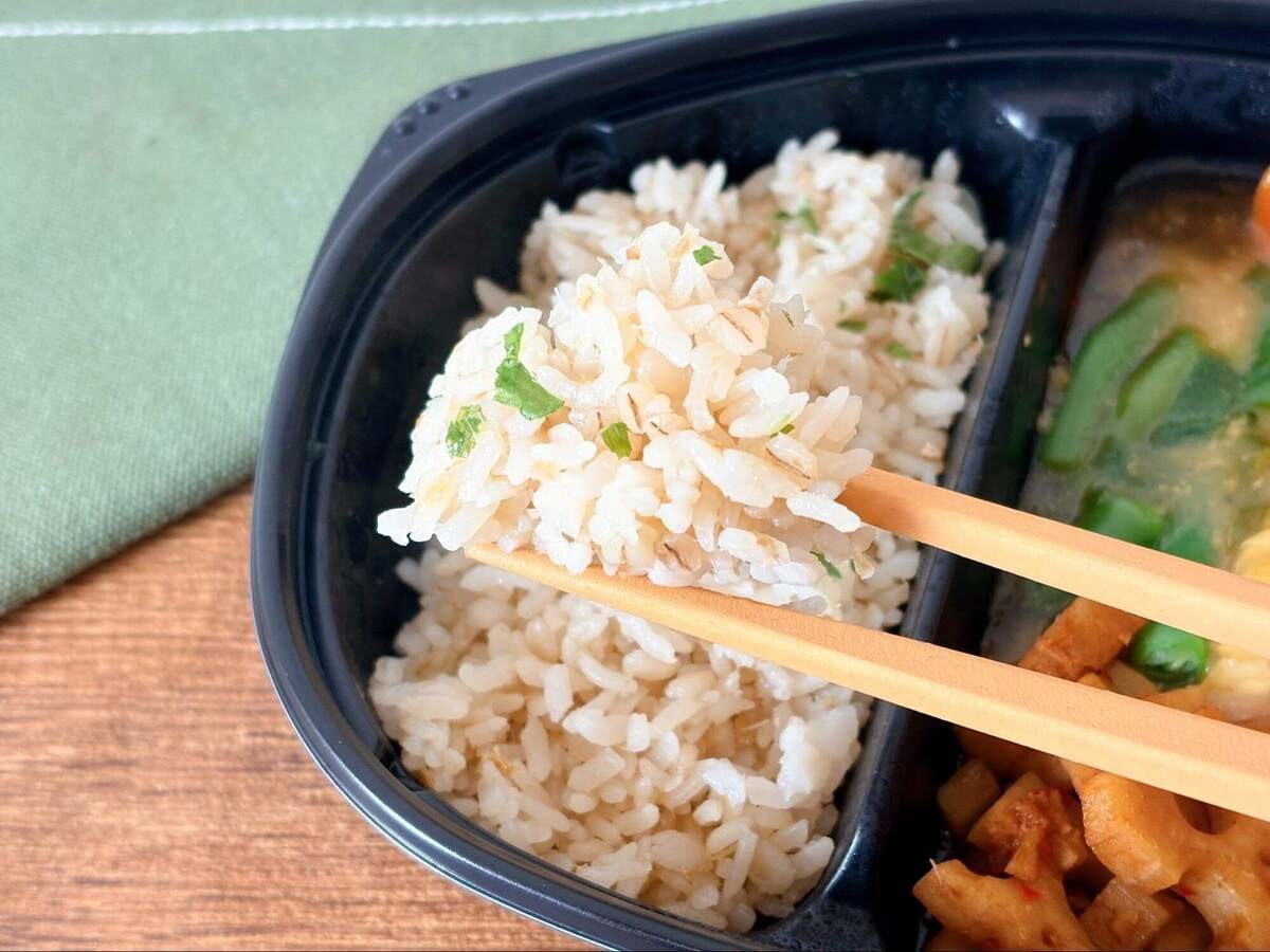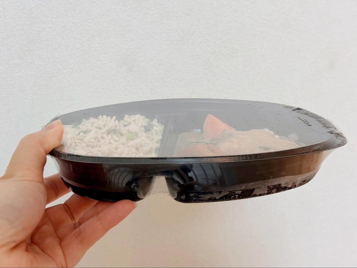 こちらはフィルムが付いていないため、自分でラップをかけて温めるタイプです。このまま加熱できる商品が多い中で、ひと手間必要なのは少し珍しいかも。