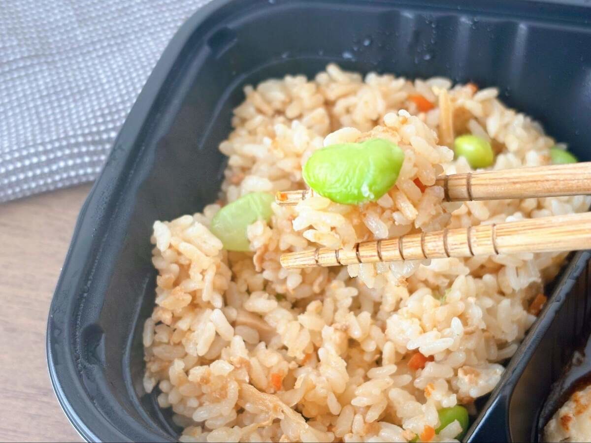 醤油ベースのやさしい味付けで、鶏肉や野菜の旨みがごはん全体にしっかりと行き渡っています。枝豆のほくっとした食感もよく、最後まで飽きずに食べ進められました。