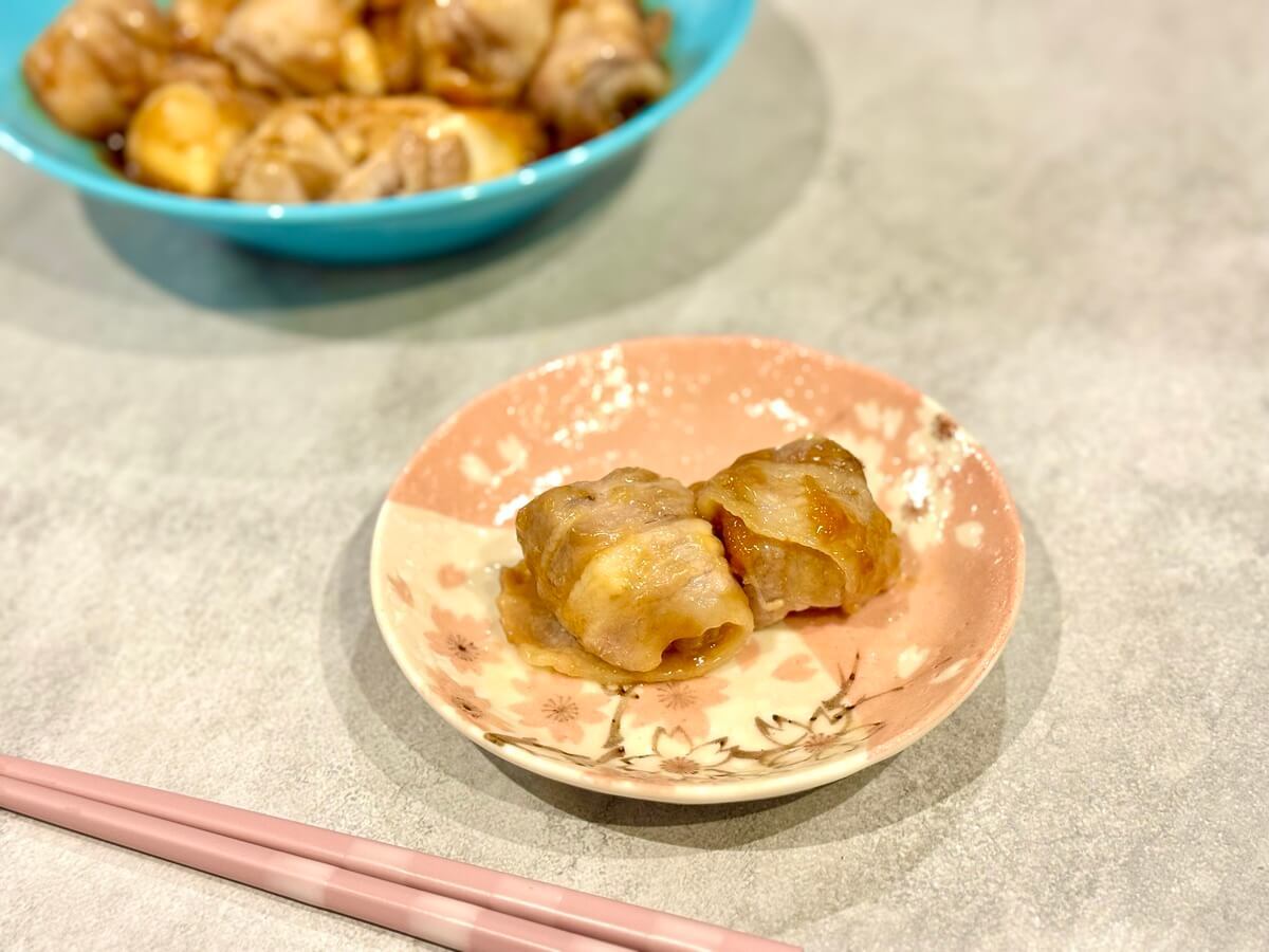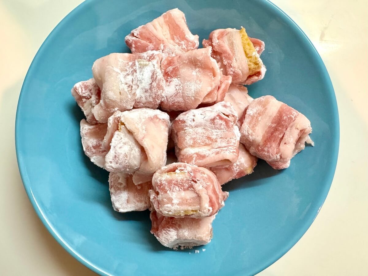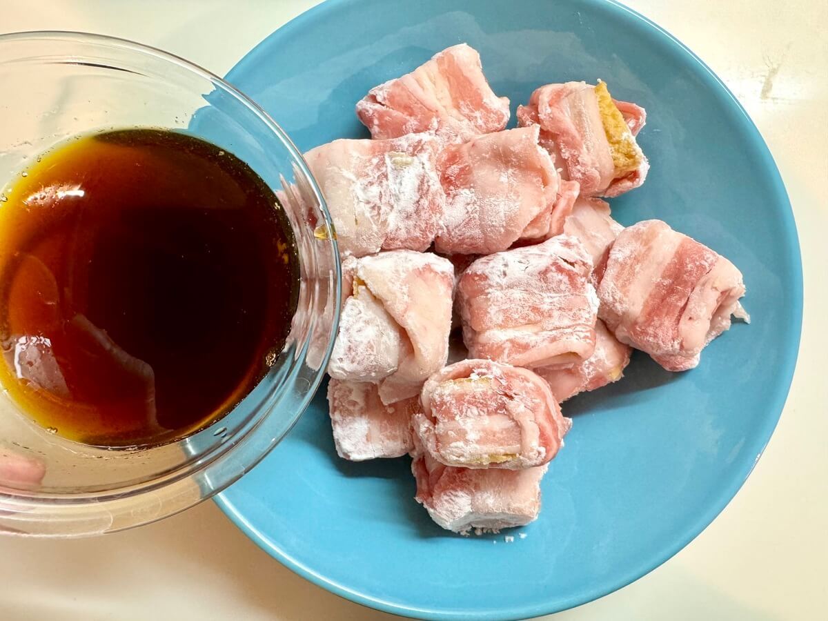 今回は厚揚げを9等分にしたのでいつもより小さいサイズの肉巻きになりました。