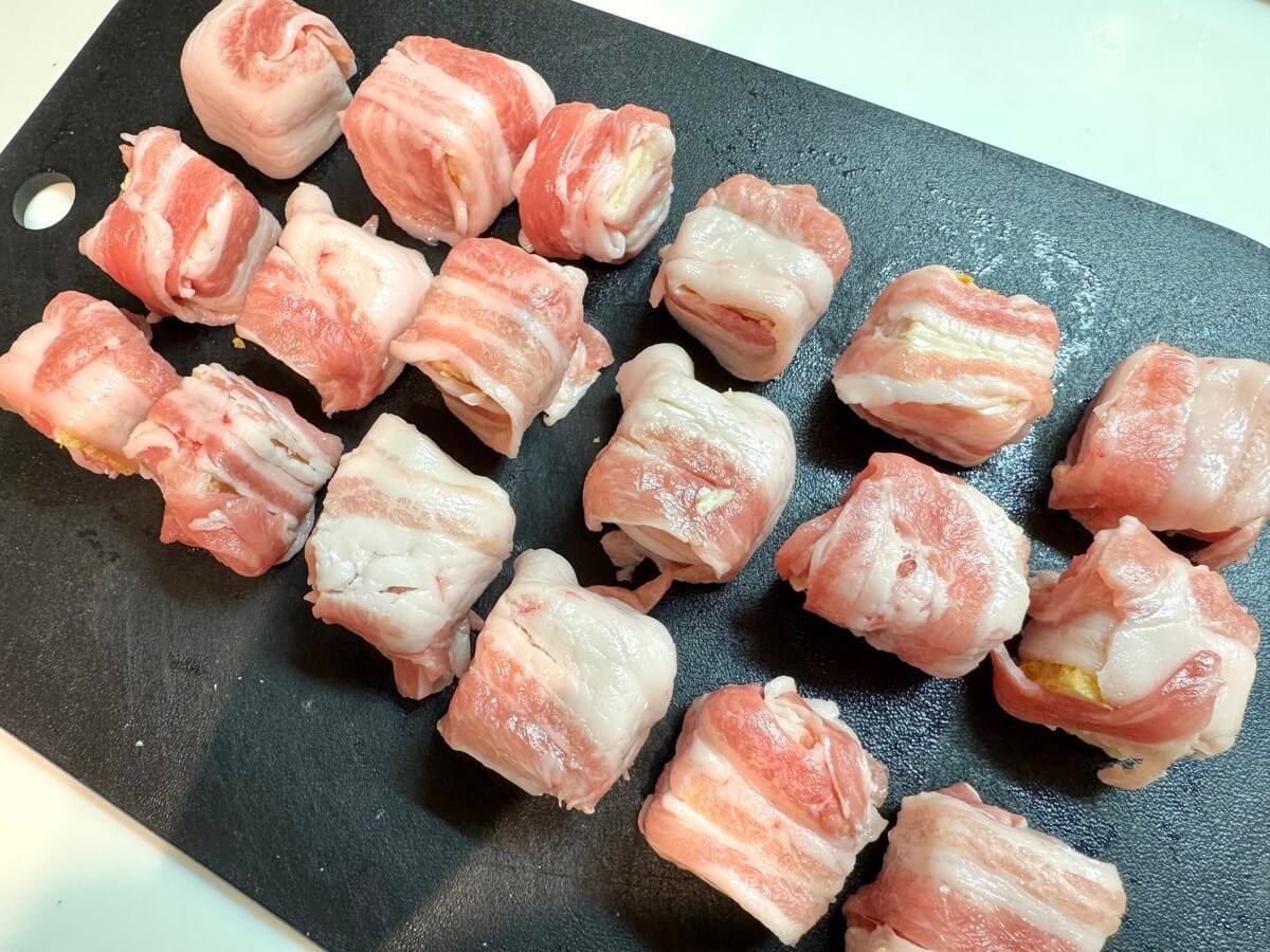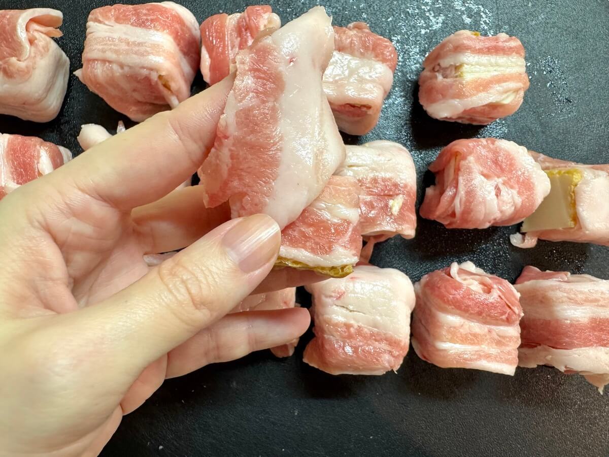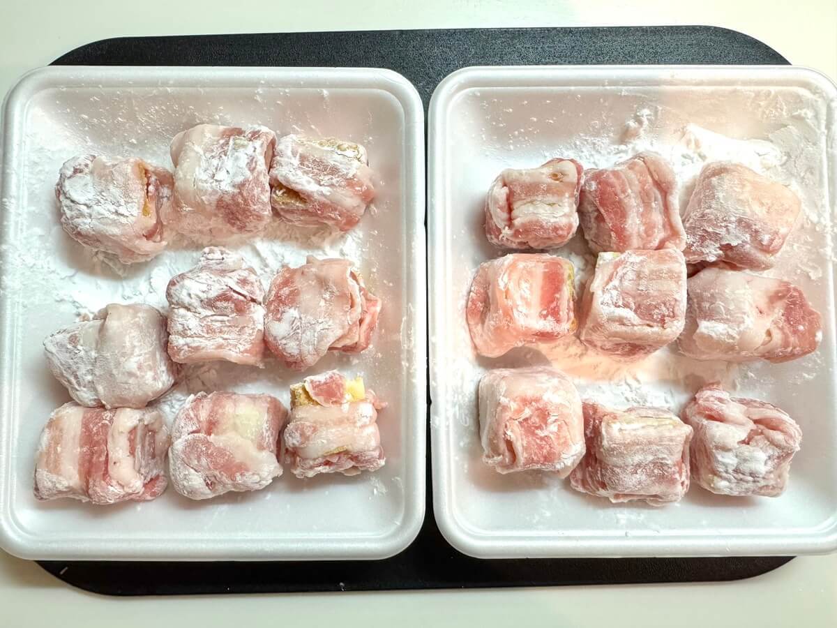 今回は厚揚げを9等分にしたのでいつもより小さいサイズの肉巻きになりました。