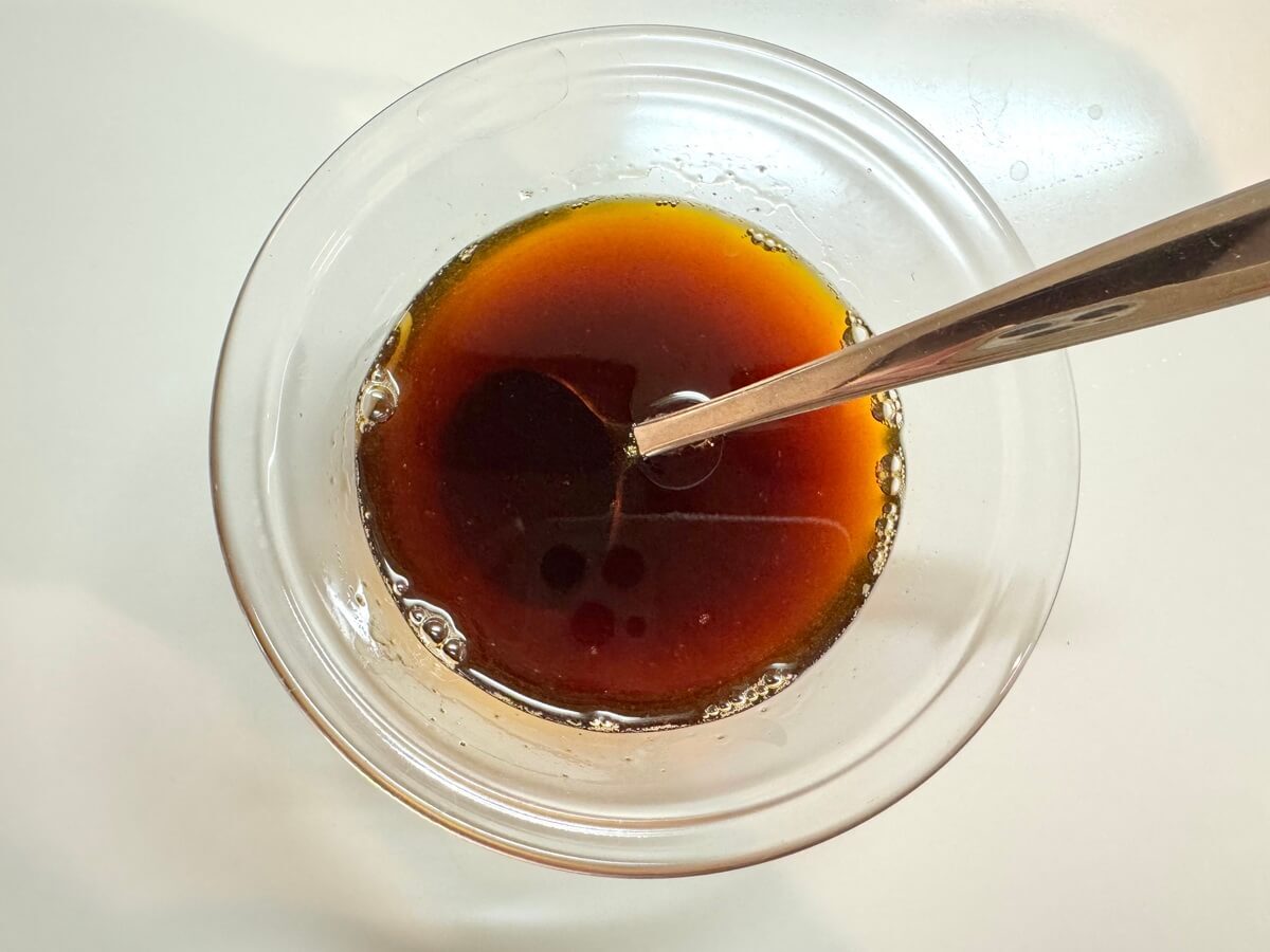作り方④調味料【A】を混ぜ合わせて肉巻きにかける
