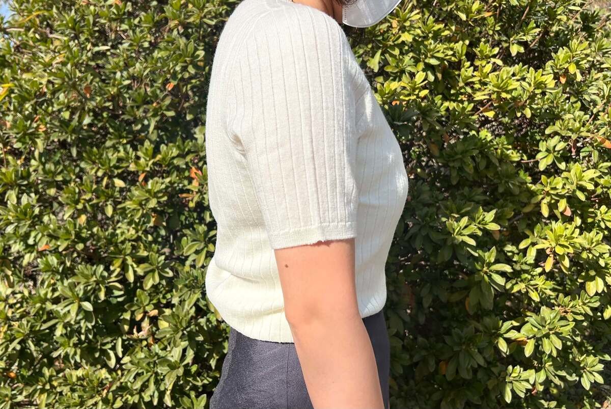 リブの縦ラインが体をスッキリ見せてくれるのはもちろん、一番うれしかったのが袖丈の絶妙さです。