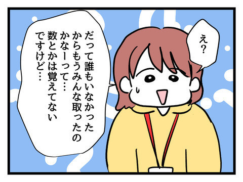 それに気づいた同僚たちがたまみさんに確認すると、悪びれるどころか「全部もらったよ♪」と笑顔で一言。どうやら「みなさんでどうぞ」という言葉を、「家族みんなでどうぞ」と都合よく解釈していたようで……。